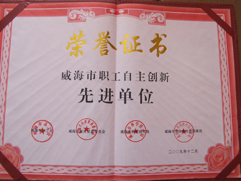 公司獲得威海市職工自主創(chuàng)新先進(jìn)單位