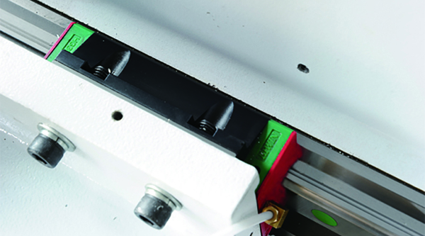 ◆Y軸采用四個(gè)臺(tái)灣上銀HGW35H加長(zhǎng)重型滑塊,其他開(kāi)料機(jī)廠(chǎng)家大多數(shù)使用30普通滑塊,更甚者使用25滑塊。