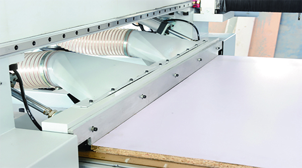 7. 推料裝置:簡(jiǎn)捷高效,推料同時(shí)二次吸塵,確保臺(tái)面無(wú)粉塵;
